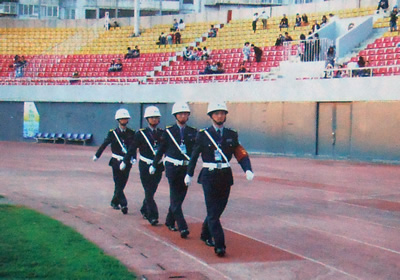軍事化的管理 統(tǒng)一的服裝、警械配備;嚴(yán)格的警衛(wèi)制度、規(guī)范的軍事訓(xùn)練、統(tǒng)一的內(nèi)勤管理;嚴(yán)謹(jǐn)?shù)难矋彶閸彵O(jiān)督制度、規(guī)范的獎懲考核制度。形成隊伍六規(guī)范:軍事訓(xùn)練規(guī)范、內(nèi)務(wù)衛(wèi)生規(guī)范、執(zhí)勤上崗規(guī)范、儀容儀表規(guī)范、文明用語規(guī)范、熱情服務(wù)規(guī)范。